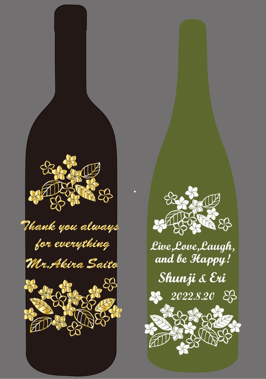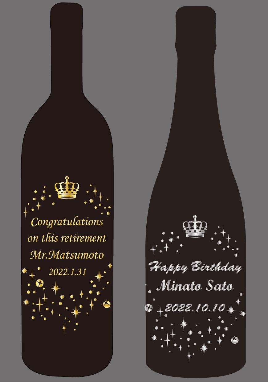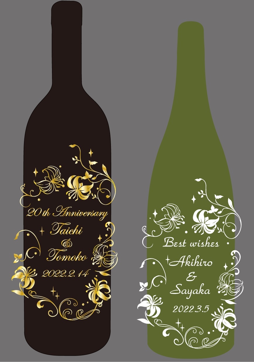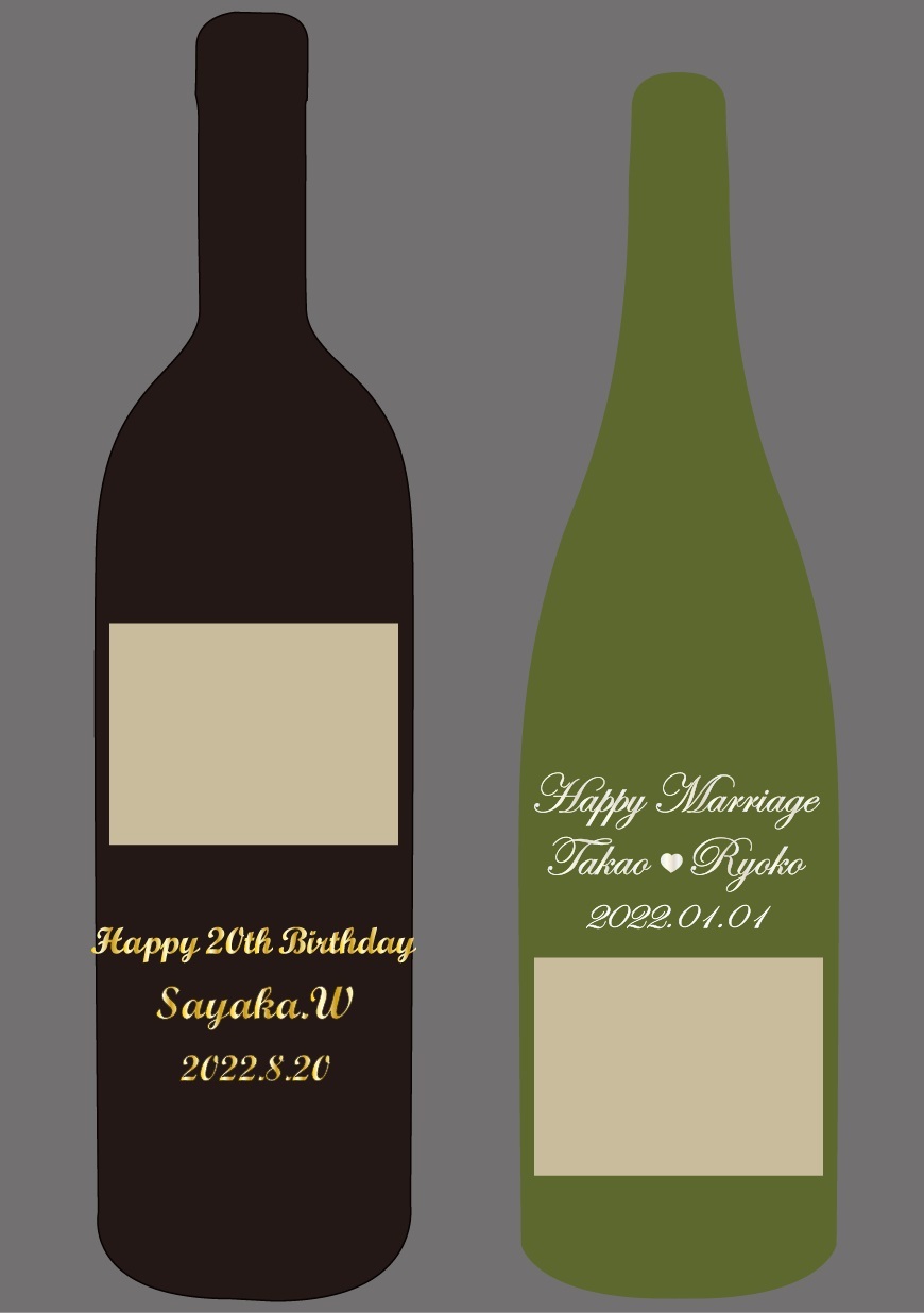 ・イメージはワインボトルですが、ウィスキー、日本酒などその他のお酒でも承ります